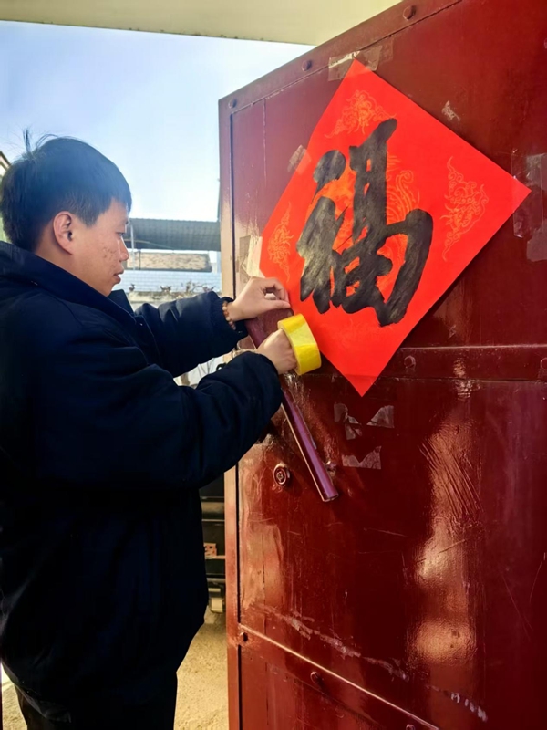 村民袁博給家中大門貼“?!弊?。人民網記者 張萌攝